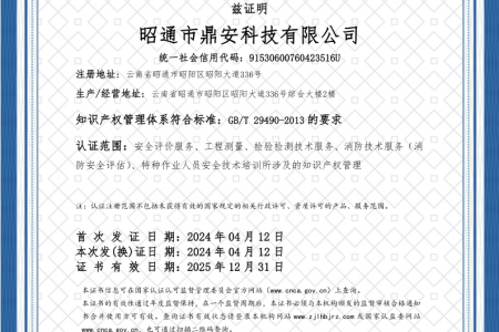 2003年11月10日,昭通市鼎安科技有限公司成立,初始主要從事第三方安全工程技術(shù)服務(wù),經(jīng)多年運營,發(fā)展為多專業(yè)綜合科技平臺,為社會提供多種專業(yè)技術(shù)服務(wù)工作。 現(xiàn)公司注冊資金為1200萬元,公司法定代表人:毛衛(wèi)旭。公司主要業(yè)務(wù):安全評價、安全標準化評審、安全工程技術(shù)服務(wù);環(huán)境監(jiān)測、職業(yè)衛(wèi)生檢測、檢驗;法律訴訟及非訴訟服務(wù);司法鑒定、固定資產(chǎn)投資項目節(jié)能服務(wù);工程咨詢;工程測量測繪;安全教育培訓等。是安全生產(chǎn)服務(wù)、安全教育培訓機構(gòu),也是環(huán)境監(jiān)測和職業(yè)衛(wèi)生服務(wù)機構(gòu),同時也是綜合的檢測檢驗、綜合科技平臺服務(wù)機構(gòu)。多年來為公、檢、法、司、軍、警、海關(guān)、仲裁、安監(jiān)、工礦商貿(mào)企業(yè)、社會團體及個人提供多專業(yè)技術(shù)服務(wù)。